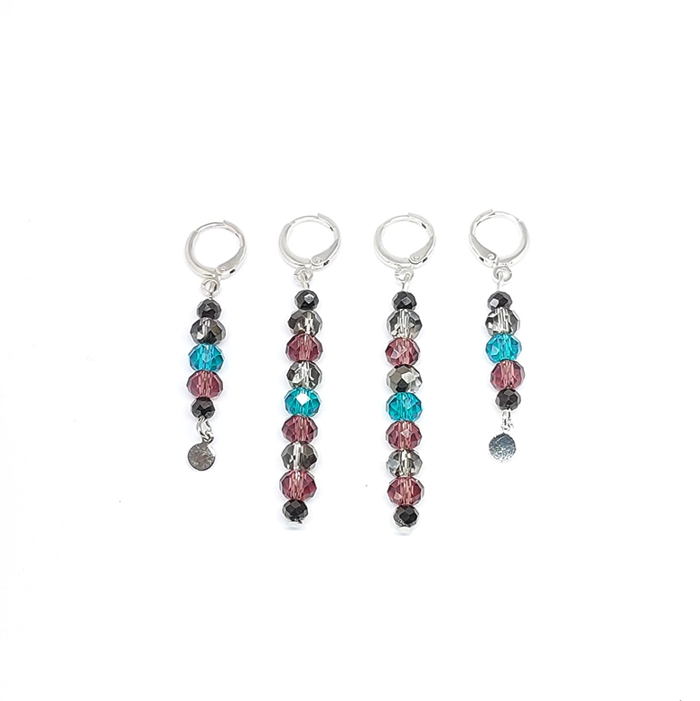 Conjunto com 4 argolas para serem usadas em primeiro e segundo furo. Cristais nas cores azul, violeta e preto.